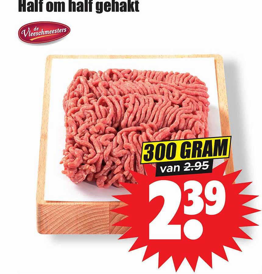 Wil je direct op de hoogte zijn zodra de Half Om Half Gehakt in de aanbieding is? Meld je aan voor onze aanbiedingen-alert. Zo krijg je een melding zodra het product tegen een voordelige prijs beschikbaar is.