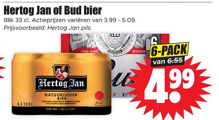 Hertog Jan Of Bud Bier aanbieding bij Dirk