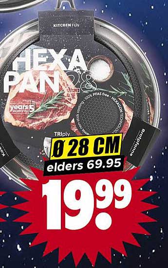 Ontdek de geweldige Hexa Pan 28 aanbieding in de nieuwste Dirk folder. Naast deze aanbieding vind je nog veel meer aantrekkelijke kortingen. Je kunt de Hexa Pan 28 eenvoudig online bestellen via de Dirk website of kopen in een winkel bij jou in de buurt.