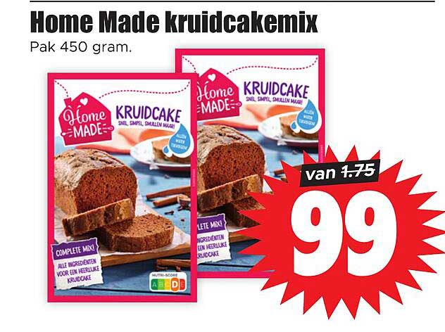 Bekijk de Home Made Kruidcakemix aanbieding bij Dirk! Deze fantastische aanbieding is nu beschikbaar in de nieuwste Dirk folder. Profiteer van deze kans en bespaar flink op je aankoop.