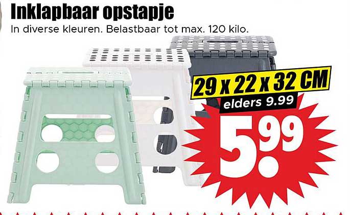 Bekijk nu de Inklapbaar opstapje aanbieding in de Dirk folder. Deze aanbieding is geldig van 29-06-2025 tot en met 05-07-2025.