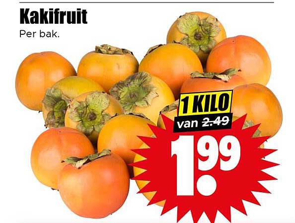 Met een normale prijs van €2,49 per kilo, bespaar je met deze aanbieding aanzienlijk! Voor slechts €1,99 kun je nu profiteren van deze exclusieve prijs die je niet wilt missen. Dit biedt een mooie kans om het kakifruit in jouw dagelijkse voeding op te nemen zonder je budget te overschrijden.