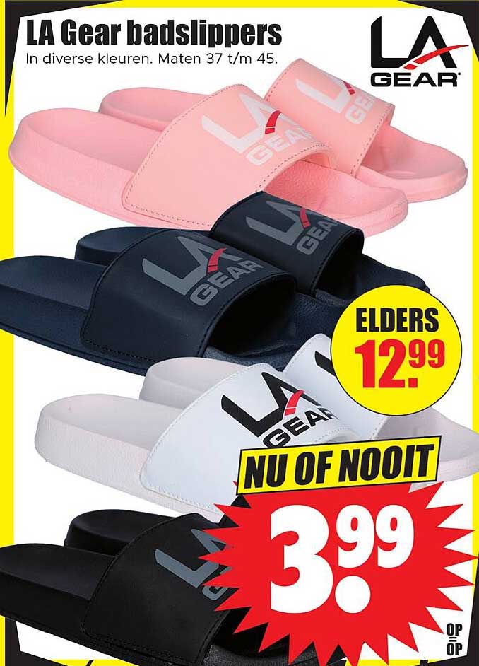 Ben je op zoek naar comfortabele en trendy badslippers? Kijk dan niet verder! De LA Gear badslippers zijn nu beschikbaar voor een ongelooflijke prijs van slechts €3,99. Dit is een tijdelijke aanbieding, geldig van 2025-03-23 tot en met 2025-03-29. Deze slippers zijn perfect voor een dagje zwembad of strand, en zijn verkrijgbaar in diverse kleuren en maten van 37 tot en met 45.