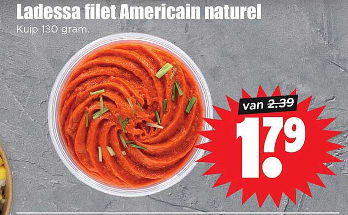 Bekijk de Ladessa Filet Americain Naturel aanbieding bij Dirk! Deze fantastische aanbieding is nu beschikbaar in de nieuwste Dirk folder. Profiteer van deze kans en bespaar flink op je aankoop.