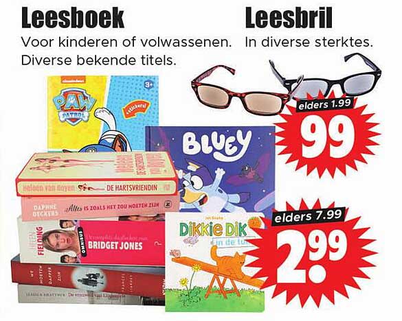 Bekijk de Leesboek Leesbril aanbieding bij Dirk! Deze fantastische aanbieding is nu beschikbaar in de nieuwste Dirk folder. Profiteer van deze kans en bespaar flink op je aankoop.