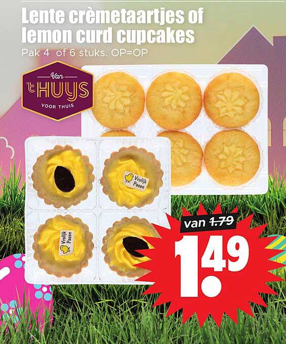Bekijk nu de Lente crèmetaartjes of lemon curd cupcakes aanbieding in de Dirk folder. Deze aanbieding is geldig van 16-04-2025 tot en met 22-04-2025.