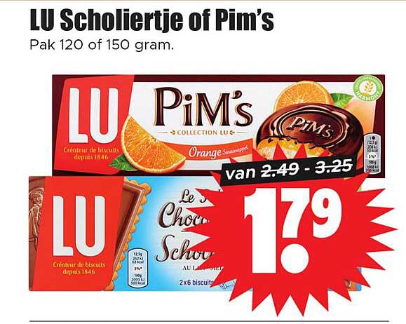 Bekijk de Lu Scholiertje Of Pim's aanbieding bij Dirk! Deze fantastische aanbieding is nu beschikbaar in de nieuwste Dirk folder. Profiteer van deze kans en bespaar flink op je aankoop.