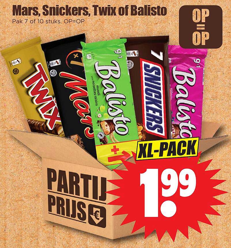 Mars, Snickers, Twix Of Balisto aanbieding bij Dirk