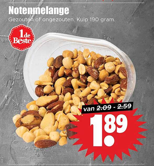 Ben je een liefhebber van noten? Dan is deze aanbieding iets voor jou! De notenmelange van Dirk is een heerlijke mix van gezouten en ongezouten noten, perfect voor een tussendoortje of als gezonde snack. Met deze aanbieding heb je de kans om van jouw favoriete noten te genieten voor een aantrekkelijke prijs.