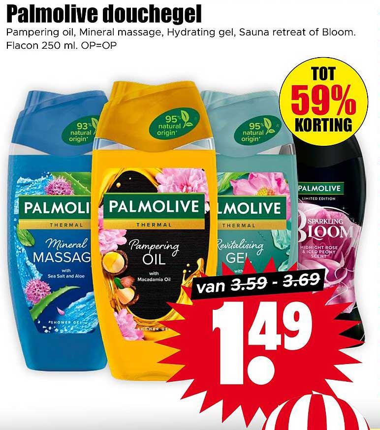 Ontdek de geweldige Palmolive Douchegel aanbieding in de nieuwste Dirk folder. Naast deze aanbieding vind je nog veel meer aantrekkelijke kortingen. Je kunt de Palmolive Douchegel eenvoudig online bestellen via de Dirk website of kopen in een winkel bij jou in de buurt.