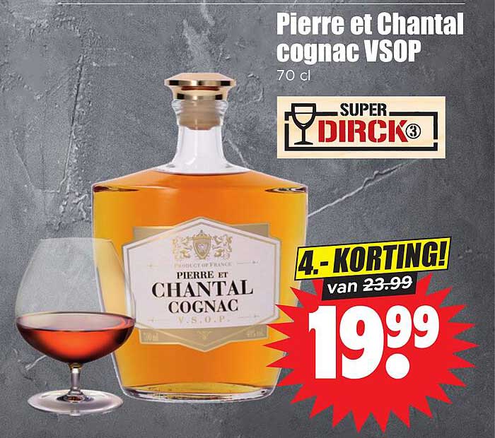 Ontdek de geweldige Pierre Et Chantal Cognac Vsop aanbieding in de nieuwste Dirk folder. Naast deze aanbieding vind je nog veel meer aantrekkelijke kortingen. Je kunt de Pierre Et Chantal Cognac Vsop eenvoudig online bestellen via de Dirk website of kopen in een winkel bij jou in de buurt.