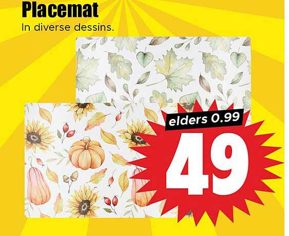 Ben je op zoek naar een manier om je tafel een frisse en vrolijke uitstraling te geven? Dan is deze placemat, beschikbaar in diverse mooie dessins, echt iets voor jou! Voor een beperkte tijd krijg je deze stijlvolle placemats bij Dirk voor een geweldige prijs. Of je nu een etentje organiseert of gewoon dagelijks gebruik van je tafel maakt, deze placemats zorgen voor een gezellige sfeer.