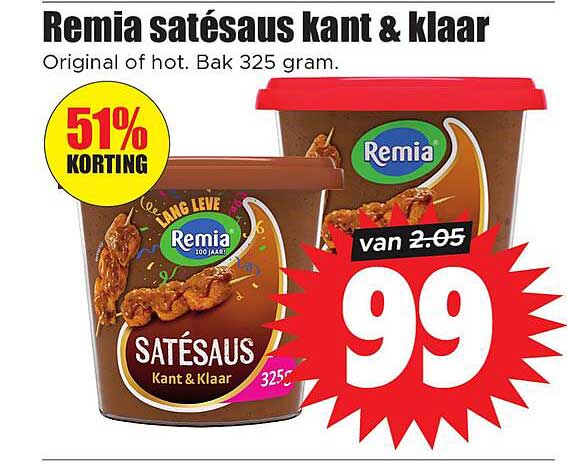 Lekker genieten van een authentieke smaak? Dan is de Remia satésaus kant & klaar echt iets voor jou! Deze overheerlijke satésaus is perfect voor bij de barbecue, als dip of gewoon als toevoeging aan je favoriete gerechten. Met maar liefst 51% korting is dit een aanbieding die je niet wilt missen!