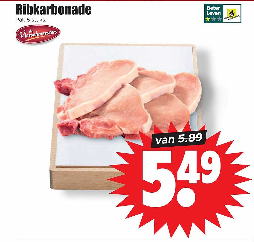 Bekijk de Ribkarbonade aanbieding bij Dirk! Deze fantastische aanbieding is nu beschikbaar in de nieuwste Dirk folder. Profiteer van deze kans en bespaar flink op je aankoop.