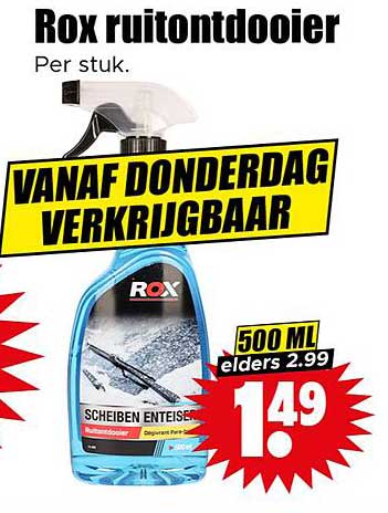Bekijk nu de Rox ruitontdooier aanbieding in de Dirk folder. Deze aanbieding is geldig van 02-11-2025 tot en met 08-11-2025.