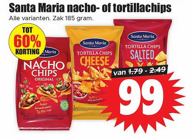 Bekijk de Santa Maria Nacho- Of Tortillachips aanbieding bij Dirk! Deze fantastische aanbieding is nu beschikbaar in de nieuwste Dirk folder. Profiteer van deze kans en bespaar flink op je aankoop.