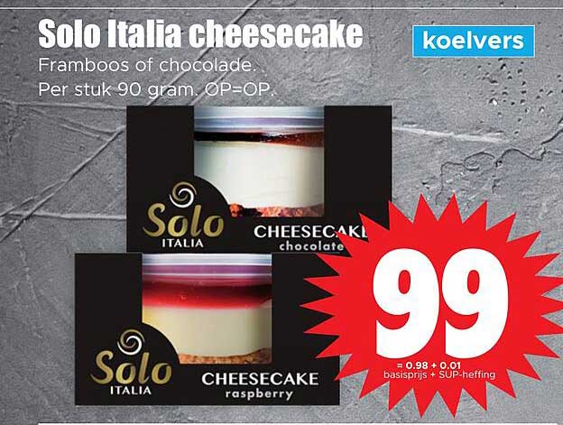 Ontdek de geweldige Solo Italia Cheesecake aanbieding in de nieuwste Dirk folder. Naast deze aanbieding vind je nog veel meer aantrekkelijke kortingen. Je kunt de Solo Italia Cheesecake eenvoudig online bestellen via de Dirk website of kopen in een winkel bij jou in de buurt.