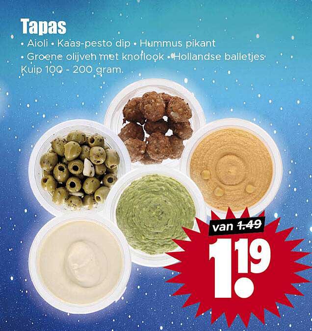 Ontdek de geweldige Tapas aanbieding in de nieuwste Dirk folder. Naast deze aanbieding vind je nog veel meer aantrekkelijke kortingen. Je kunt de Tapas eenvoudig online bestellen via de Dirk website of kopen in een winkel bij jou in de buurt.