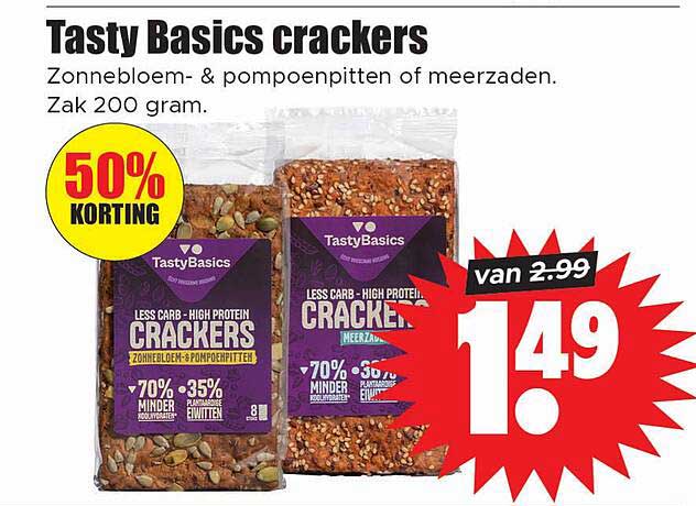 Bekijk de Tasty Basics Crackers aanbieding bij Dirk! Deze fantastische aanbieding is nu beschikbaar in de nieuwste Dirk folder. Profiteer van deze kans en bespaar flink op je aankoop.