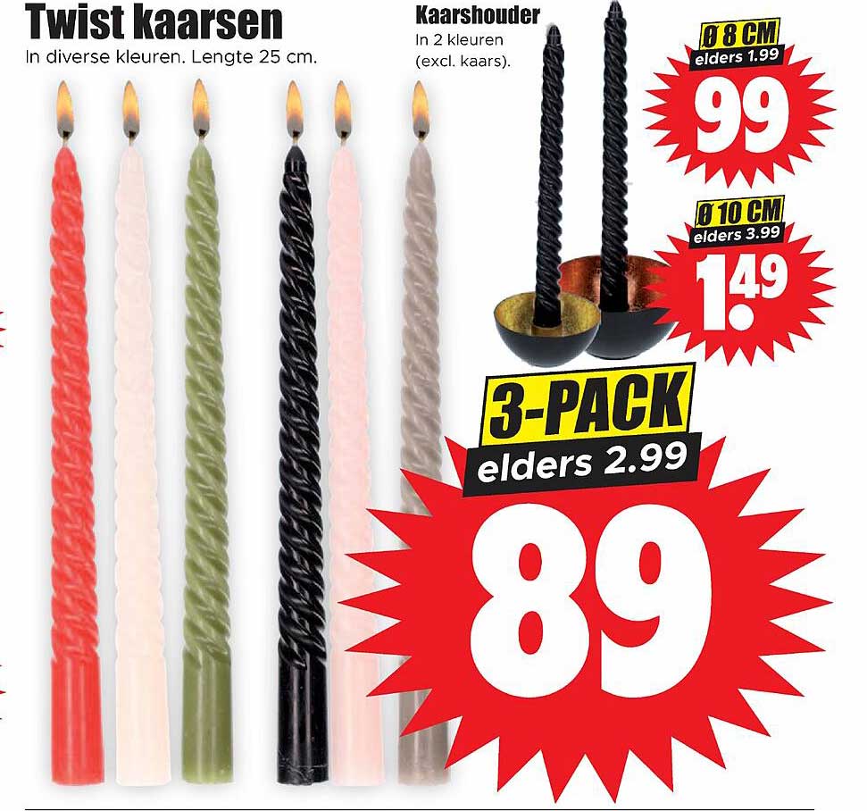 Bekijk de Twist Kaarsen aanbieding bij Dirk! Deze fantastische aanbieding is nu beschikbaar in de nieuwste Dirk folder. Profiteer van deze kans en bespaar flink op je aankoop.