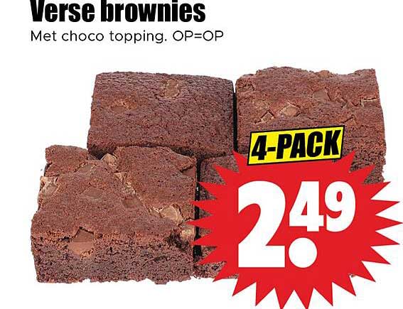 Ben jij ook zo'n liefhebber van zoetigheid? Dan is deze aanbieding echt iets voor jou! Op deze pagina vind je een onweerstaanbare deal voor verse brownies met choco topping. Deze lekkernijen zijn perfect als snack of als toetje na een heerlijke maaltijd en zijn ideaal om te delen met vrienden of familie.