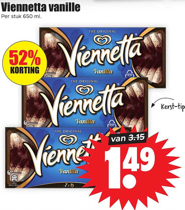 Bekijk de Viennetta Vanille aanbieding bij Dirk! Deze fantastische aanbieding is nu beschikbaar in de nieuwste Dirk folder. Profiteer van deze kans en bespaar flink op je aankoop.