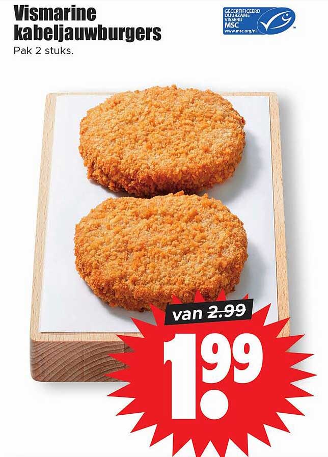 Bekijk de Vismarine Kabeljauwburgers aanbieding bij Dirk! Deze fantastische aanbieding is nu beschikbaar in de nieuwste Dirk folder. Profiteer van deze kans en bespaar flink op je aankoop.