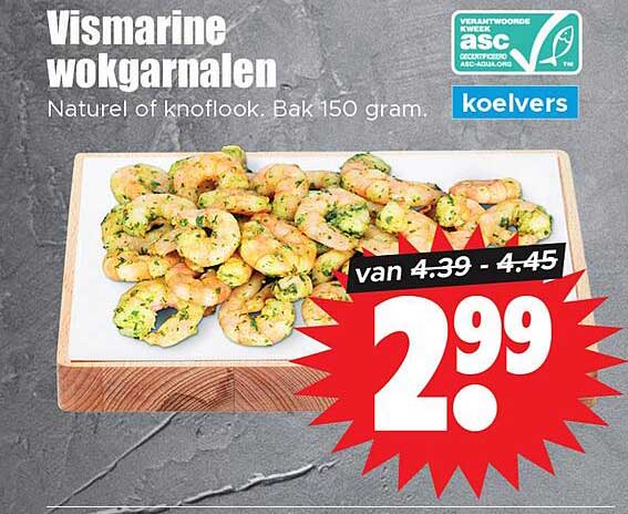 De vismarine wokgarnalen zijn beschikbaar in een verpakking van 150 gram en zijn verkrijgbaar in de smaken naturel of knoflook. Met het ASC-keurmerk weet je zeker dat je kiest voor verantwoorde en duurzame producten. Bovendien zijn de garnalen gemakkelijk te bereiden in slechts enkele minuten!