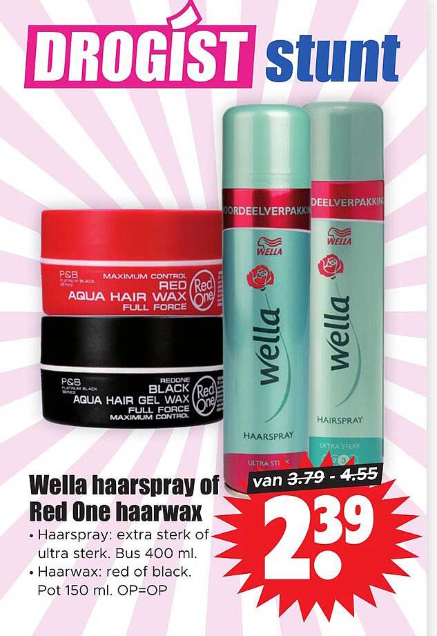 Bekijk de Wella Haarspray Of Red One Haarwax aanbieding bij Dirk! Deze fantastische aanbieding is nu beschikbaar in de nieuwste Dirk folder. Profiteer van deze kans en bespaar flink op je aankoop.