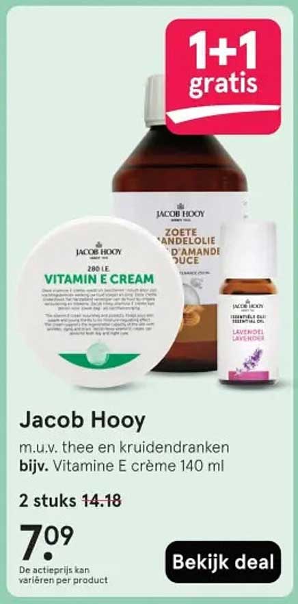 Bekijk nu de 1+1 gratis Jacob Hooy - Vitamine E crème 140 ml aanbieding in de Etos folder. Deze aanbieding is geldig van 26-09-2025 tot en met 05-10-2025.