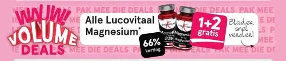 Wil je direct op de hoogte zijn zodra de Alle Lucovitaal Magnesium in de aanbieding is? Meld je aan voor onze aanbiedingen-alert. Zo krijg je een melding zodra het product tegen een voordelige prijs beschikbaar is.