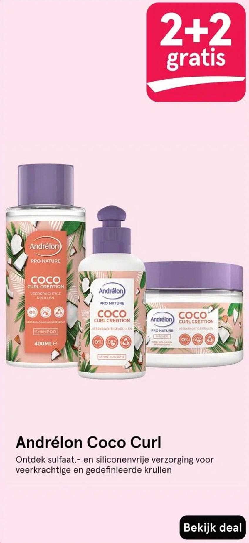 Ben jij op zoek naar de perfecte verzorging voor jouw krullen? Zoek niet verder! De Andrélon Coco Curl serie biedt een sulfaatsvrije en siliconenvrije oplossing die speciaal is ontwikkeld voor veerkrachtige en gedefinieerde krullen. Deze aanbieding is tijdelijk en geldig van 2025-06-09 tot en met 2025-06-15. Mis het niet!