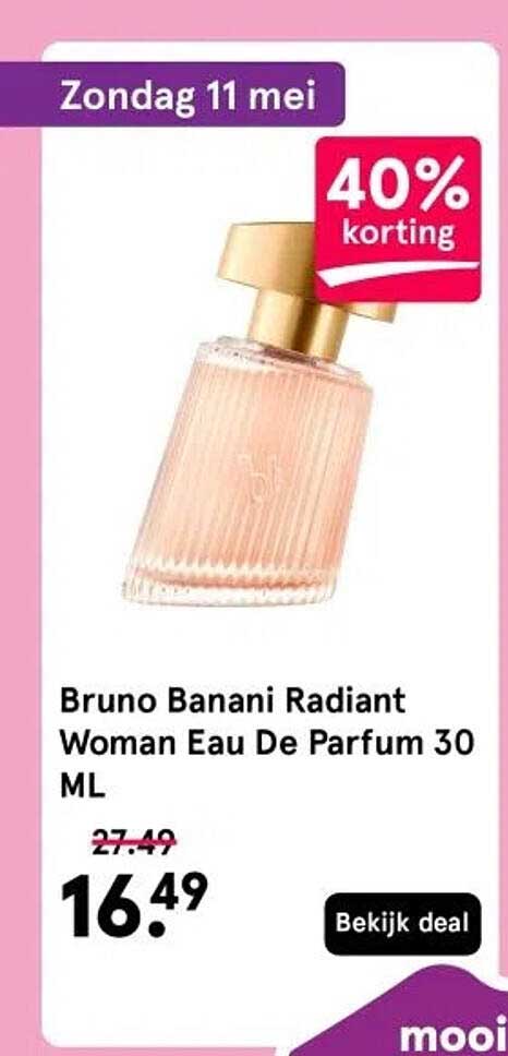 Ben je op zoek naar een geur die je zelfvertrouwen een boost geeft en je laat stralen? De Bruno Banani Radiant Woman Eau De Parfum, nu met een spectaculaire korting van 40%, is de perfecte keuze! Deze frisse en vrouwelijke geur is ideaal voor elke gelegenheid, of je nu een dagje uit gaat of een speciale avond hebt gepland. Maak gebruik van deze aanbieding die geldig is van 8 mei tot en met 12 mei 2025 en trakteer jezelf op een luxe parfum zonder een te hoge prijs te betalen.