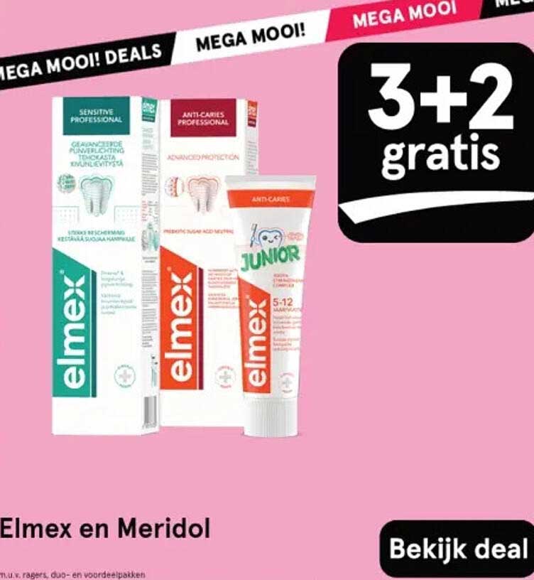 De producten van Elmex zijn perfect voor het voorkomen van tandbederf en het bevorderen van een gezonde mond. Meridol gaat speciaal in op het beschermen van je tandvlees en voorkomt tandvleesontsteking. Met de 3+2 gratis actie, krijg je de kans om verschillende varianten uit te proberen of om een extra voorraad aan te leggen voor het hele gezin.