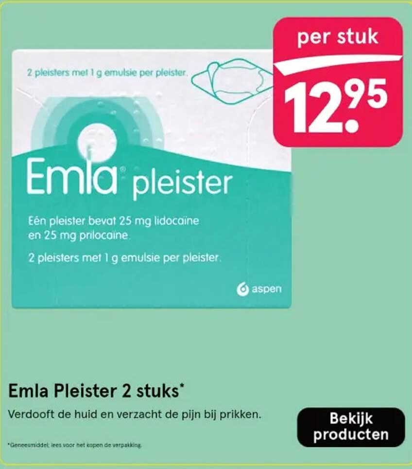 Deze Emla Pleister is verkrijgbaar voor slechts €12,95 per stuk. Dat is een geweldige prijs voor een product dat zoveel waarde biedt in termen van comfort en pijnverlichting. Vergelijk deze prijs met andere pijnstillers of alternatieven en je zult al snel concluderen dat deze aanbieding een absolute win-win is!