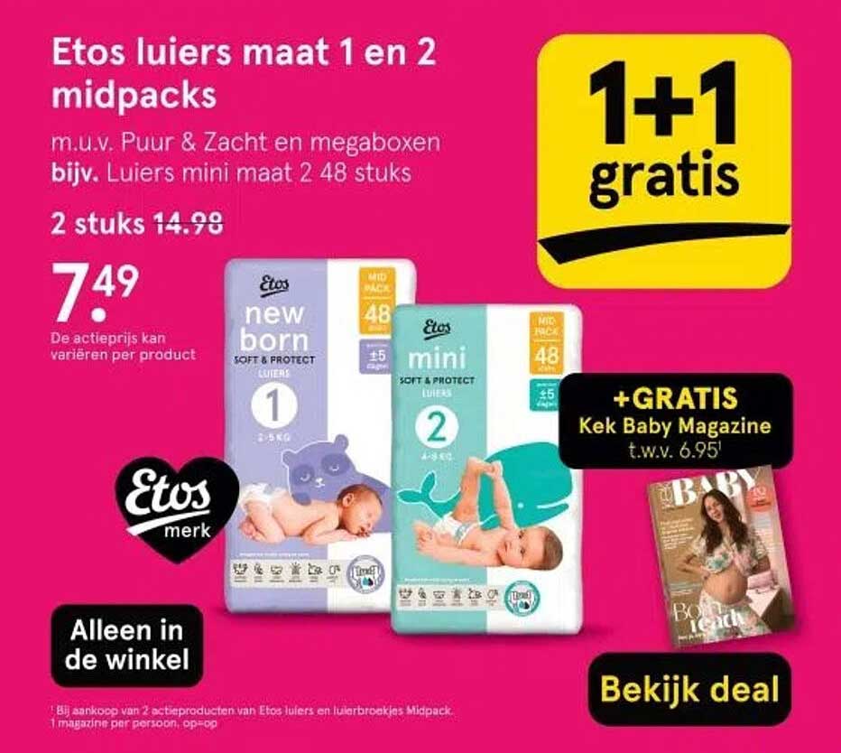 Ben je op zoek naar kwaliteitsluier voor jouw kleintje? Dan hebben we geweldig nieuws! Tijdens de actieperiode van 19 mei tot 25 mei 2025 kun je bij Etos profiteren van een bijzonder aantrekkelijke aanbieding. Bij de aanschaf van twee Etos luier midpacks, krijg je een derde helemaal gratis! Dit is de perfecte gelegenheid om in te slaan en ervoor te zorgen dat je altijd goed voorbereid bent, vooral tijdens de drukke dagen met een baby.