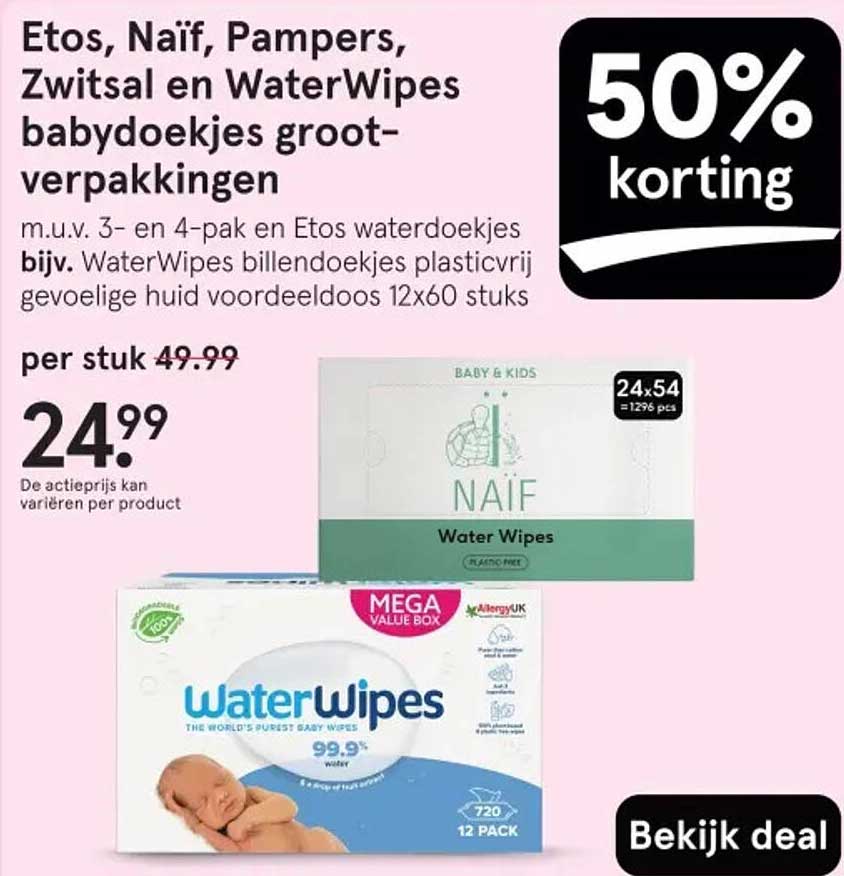 Wat een fantastische kans om je babyzorgproducten in te slaan! Op deze pagina worden de grootverpakkingen van Etos, Naïf, Pampers, Zwitsal en WaterWipes aangeboden met maar liefst 50% korting. Deze aanbieding is geldig van 6 oktober tot en met 19 oktober 2025. Zorg ervoor dat je deze kans niet mist om gebruik te maken van hoge kortingen op de beste babydoekjes en -verzorgingsproducten.
