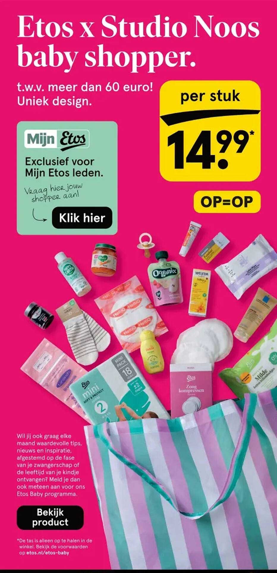 Bekijk nu de Etos x Studio Noos baby shopper. aanbieding in de Etos folder. Deze aanbieding is geldig van 20-10-2025 tot en met 02-11-2025.