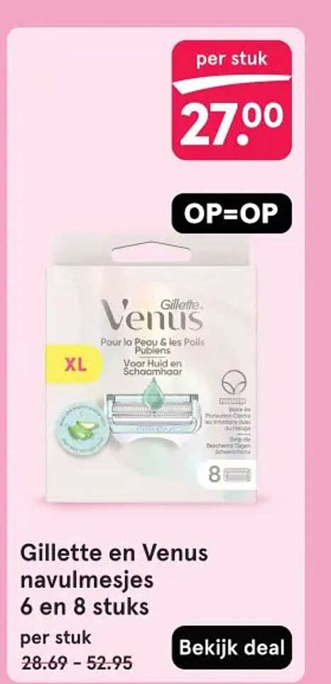 Ontdek de geweldige aanbieding van Gillette en Venus navulmesjes, perfect voor een zijdezachte huid. Met deze navulmesjes krijg je niet alleen een gladde scheerbeurt, maar ook verzorging voor je huid. Deze aanbieding is geldig van 14 april tot en met 20 april, dus grijp je kans!