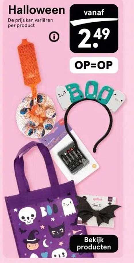 Halloween komt er weer aan, en dat betekent dat het tijd is om je voor te bereiden op een spookachtig feest! Op deze pagina vind je een geweldige aanbieding van Etos, waar je verschillende Halloween-accessoires kunt kopen vanaf slechts €2,49. Het is de perfecte gelegenheid om je huis, kostuum of zelfs je eigen Halloween-party te verfraaien zonder de bank te breken.