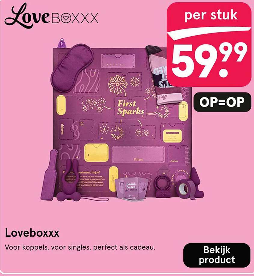 De Loveboxxx is verkrijgbaar voor slechts €59,99 per stuk, een geweldige prijs voor wat je ervoor terugkrijgt. Door deze aanbieding te benutten, bespaar je aanzienlijk ten opzichte van de normale prijs van vergelijkbare producten. Dit is jouw kans om een unieke ervaring te creëren zonder je budget te overschrijden!