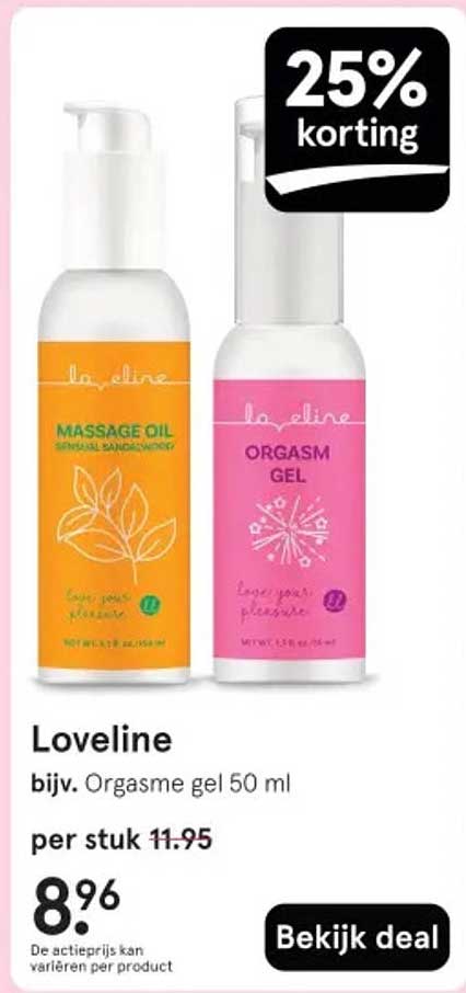 Ben je op zoek naar een spannende aanvulling op je intieme momenten? Kijk dan niet verder! Deze aanbieding biedt de Loveline Orgasm gel, een product dat speciaal is ontworpen om je ervaring te intensiveren. Met een fantastische korting van 25% is dit de perfecte kans om het uit te proberen.