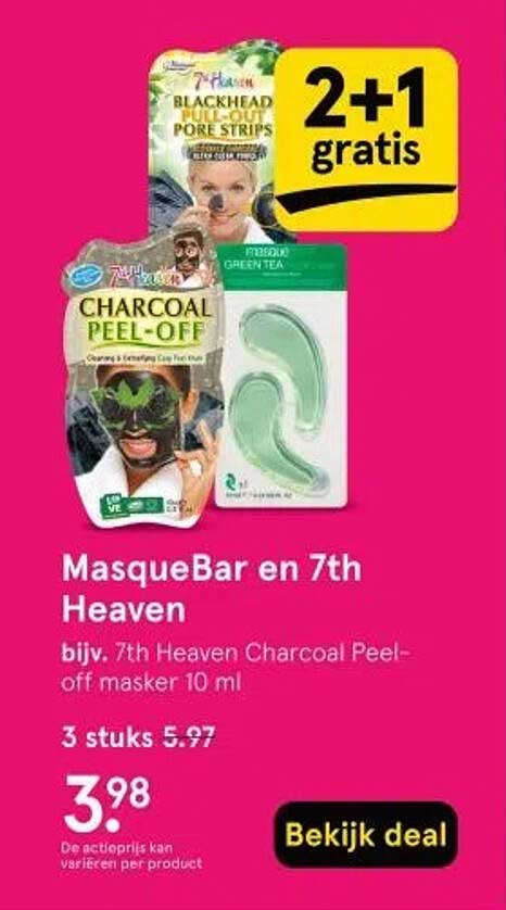 Heb je ooit gewenst dat je huid weer stralend en fris is? Deze aanbieding van Etos is dan perfect voor jou! Met het 7th Heaven Charcoal Peel-off masker en diverse andere huidverzorgingsproducten van MasqueBar profiteer je van een geweldige deal. Het masker is niet alleen effectief, maar ook leuk om te gebruiken. Geniet van een verwenmomentje voor jezelf of deel het met een vriendin.