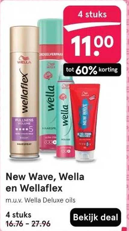 Op zoek naar producten die je haar de perfecte look geven? Zoek niet verder! Deze aanbieding van Wella biedt een fantastische combinatie van haarverzorging en stylingproducten. Van volumizing hairspray tot verzorgende crèmes, je hebt alles wat je nodig hebt om jouw stijl een boost te geven. Met kortingen tot 60% maakt dit het een uitstekende kans om te besparen op topkwaliteit haarproducten.