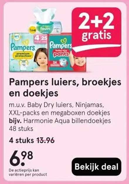 Wil je direct op de hoogte zijn zodra de Pampers Luiers, Broekjes En Doekjes in de aanbieding is? Meld je aan voor onze aanbiedingen-alert. Zo krijg je een melding zodra het product tegen een voordelige prijs beschikbaar is.