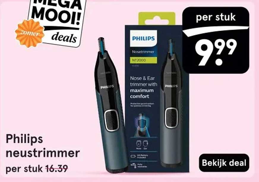 Met een scherpe aanbiedingprijs van 9,99 euro in plaats van de reguliere 16,39 euro, bespaar je aanzienlijk. Dit maakt het een van de slimste aankopen die je dit seizoen kunt maken. De kwaliteit van de Philips neustrimmer in combinatie met deze onweerstaanbare prijs maakt het een deal die je niet wilt missen.