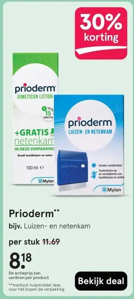 Bekijk nu de Prioderm** bijv. Luizen- en netenkam aanbieding in de Etos folder. Deze aanbieding is geldig van 11-08-2025 tot en met 17-08-2025.
