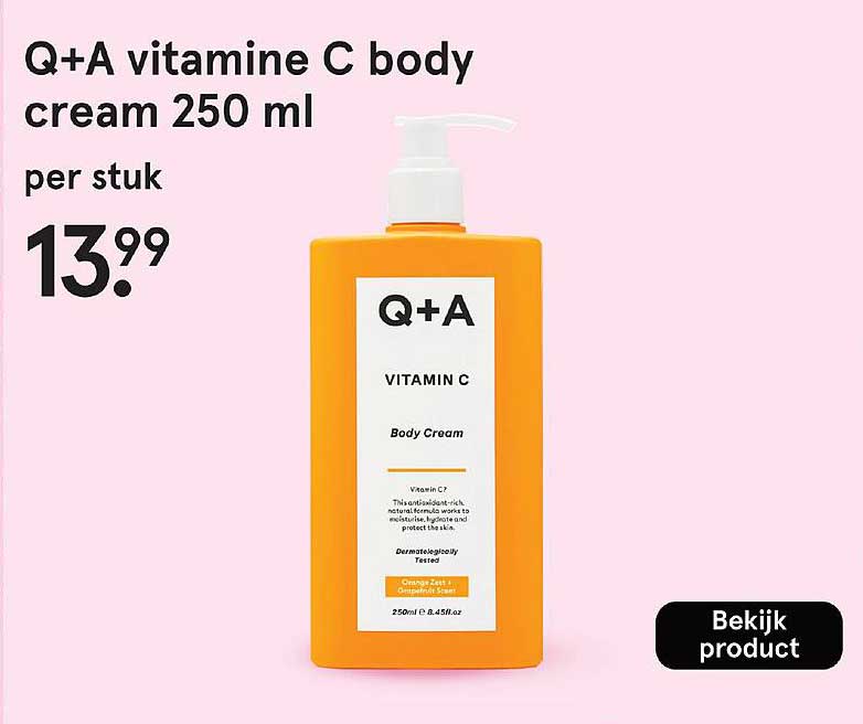 Bekijk nu de Q+A vitamine C body cream 250 ml aanbieding in de Etos folder. Deze aanbieding is geldig van 07-07-2025 tot en met 13-07-2025.