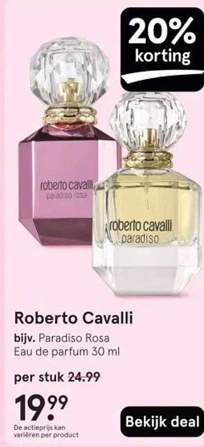 Bekijk nu de Roberto Cavalli bijv. Paradiso Rosa Eau de parfum 30 ml aanbieding in de Etos folder. Deze aanbieding is geldig van 13-10-2025 tot en met 19-10-2025.