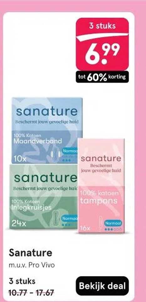 Ontdek de geweldige Sanature aanbieding in de nieuwste Etos folder. Naast deze aanbieding vind je nog veel meer aantrekkelijke kortingen. Je kunt de Sanature eenvoudig online bestellen via de Etos website of kopen in een winkel bij jou in de buurt.